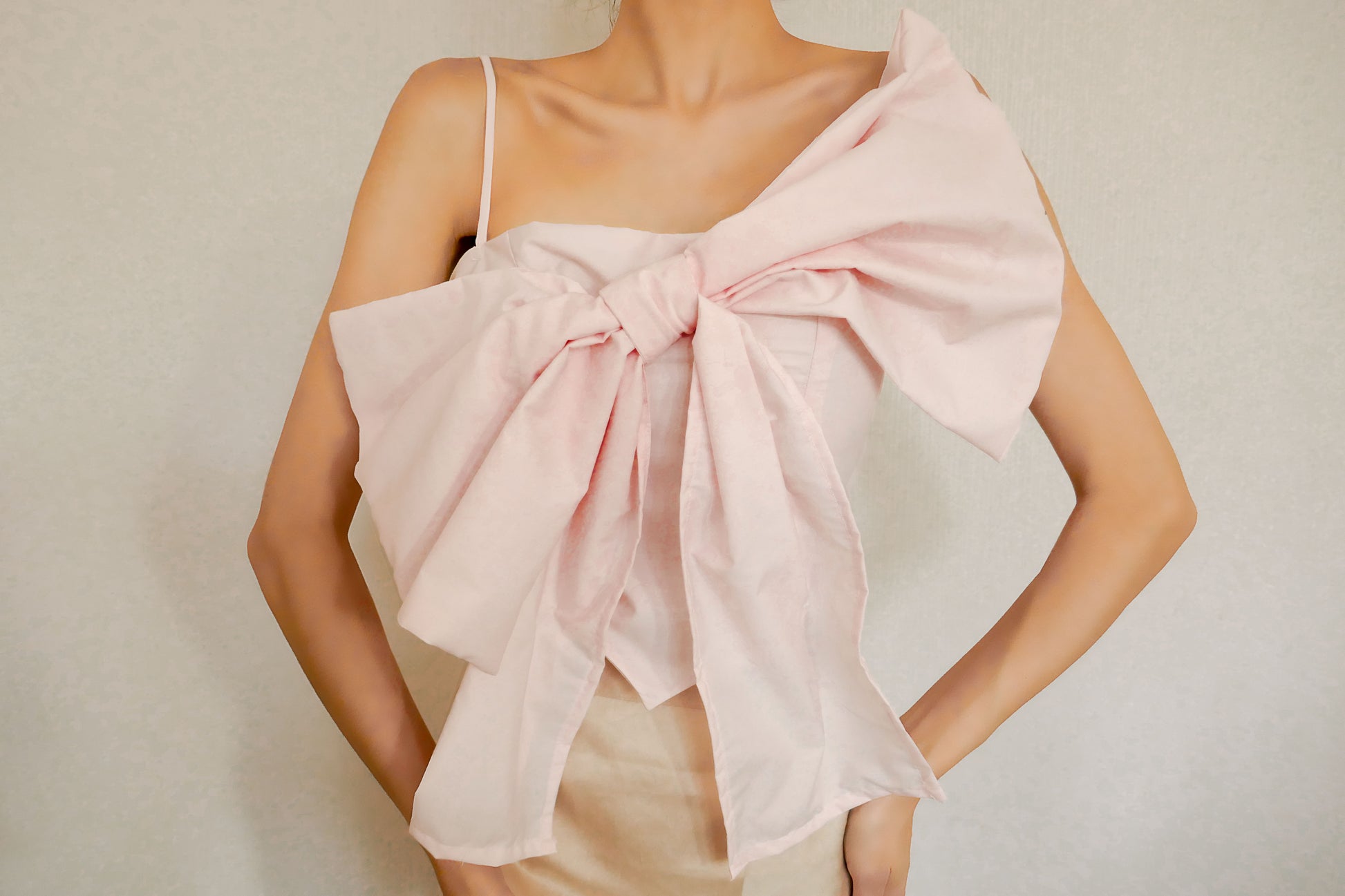 Cut from the soft pink cotton, Blair is ultra-feminine and we love the oversized ribbon for pretty drama. It zips to the back for easy on. Pair it with jeans or a midi skirt for the perfect fit for summer. Get ready to leave a trail of awe with this captivating and unforgettable top!