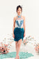 The model is 174cm tall, wearing size XS for tops and size M for bottoms. For dresses, she wears size M, tailored to her measurements for the photoshoot.