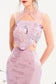 The model is 174cm tall, wearing size XS for tops and size M for bottoms. For dresses, she wears size M, tailored to her measurements for the photoshoot.
